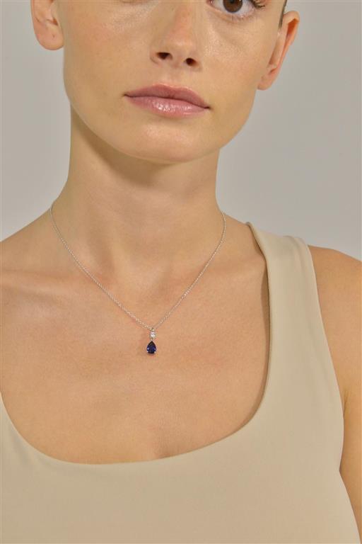 Collar Salvatore Plata rodio Zafiro Laboratorio pera y circonitas.