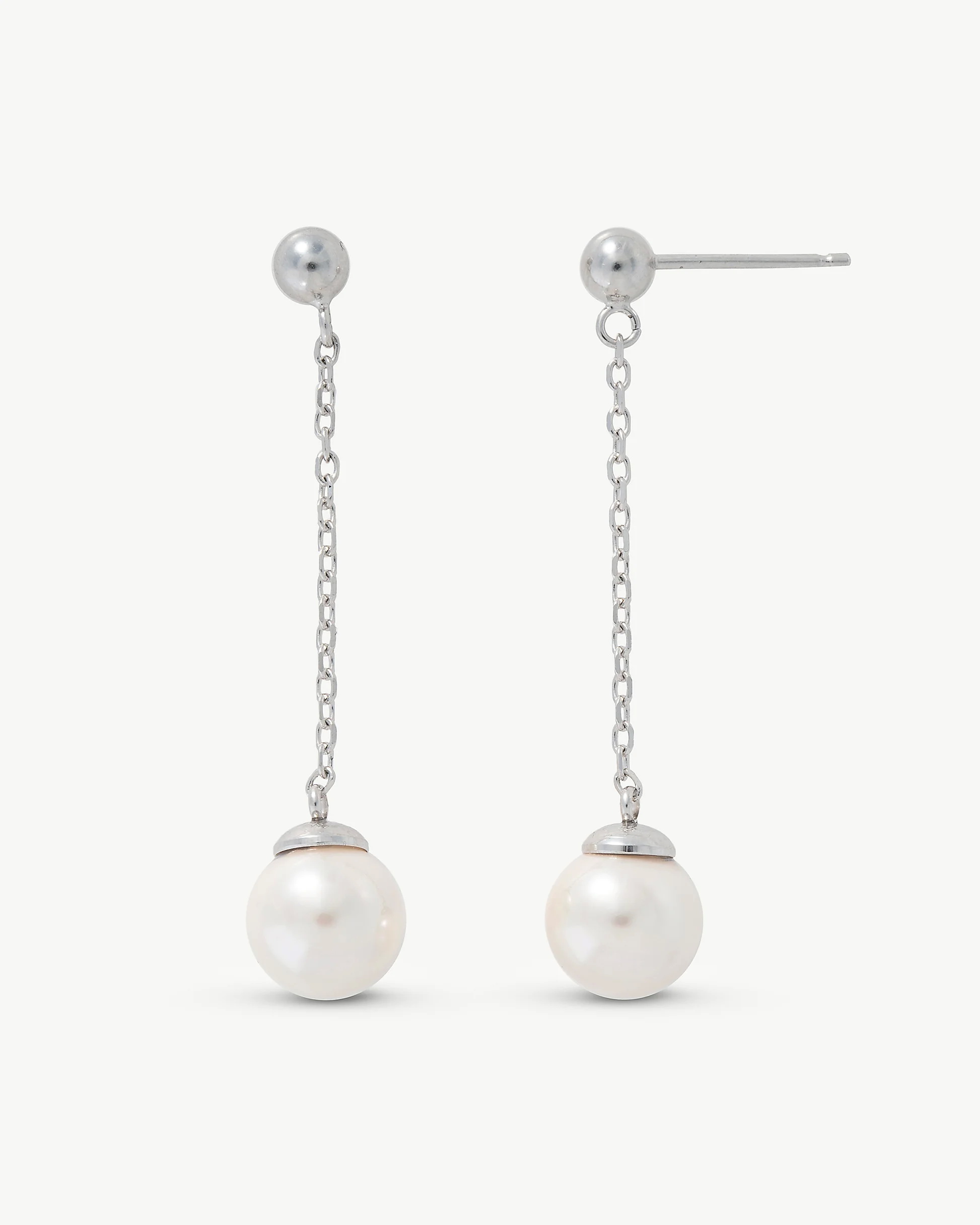 Pendientes con pincho en plata con perla redonda blanca de 8mm.