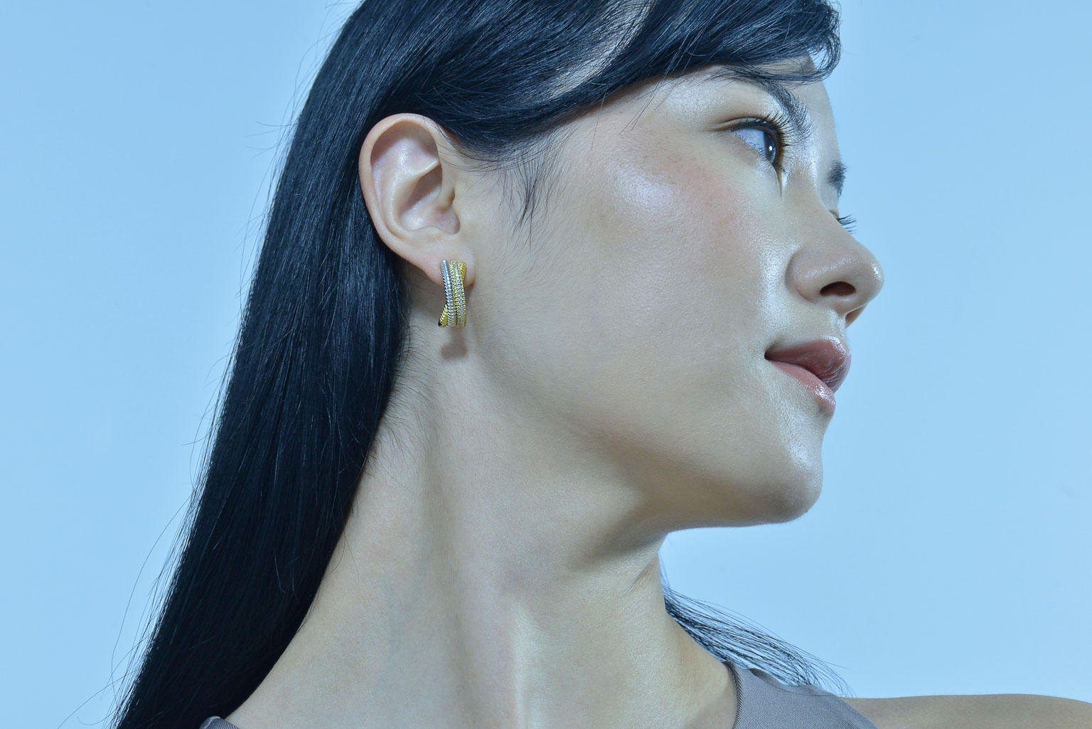 Pendientes Salvatore Plata chapado dorado rodio dos lineas gallonadas y una línea circonitas.
