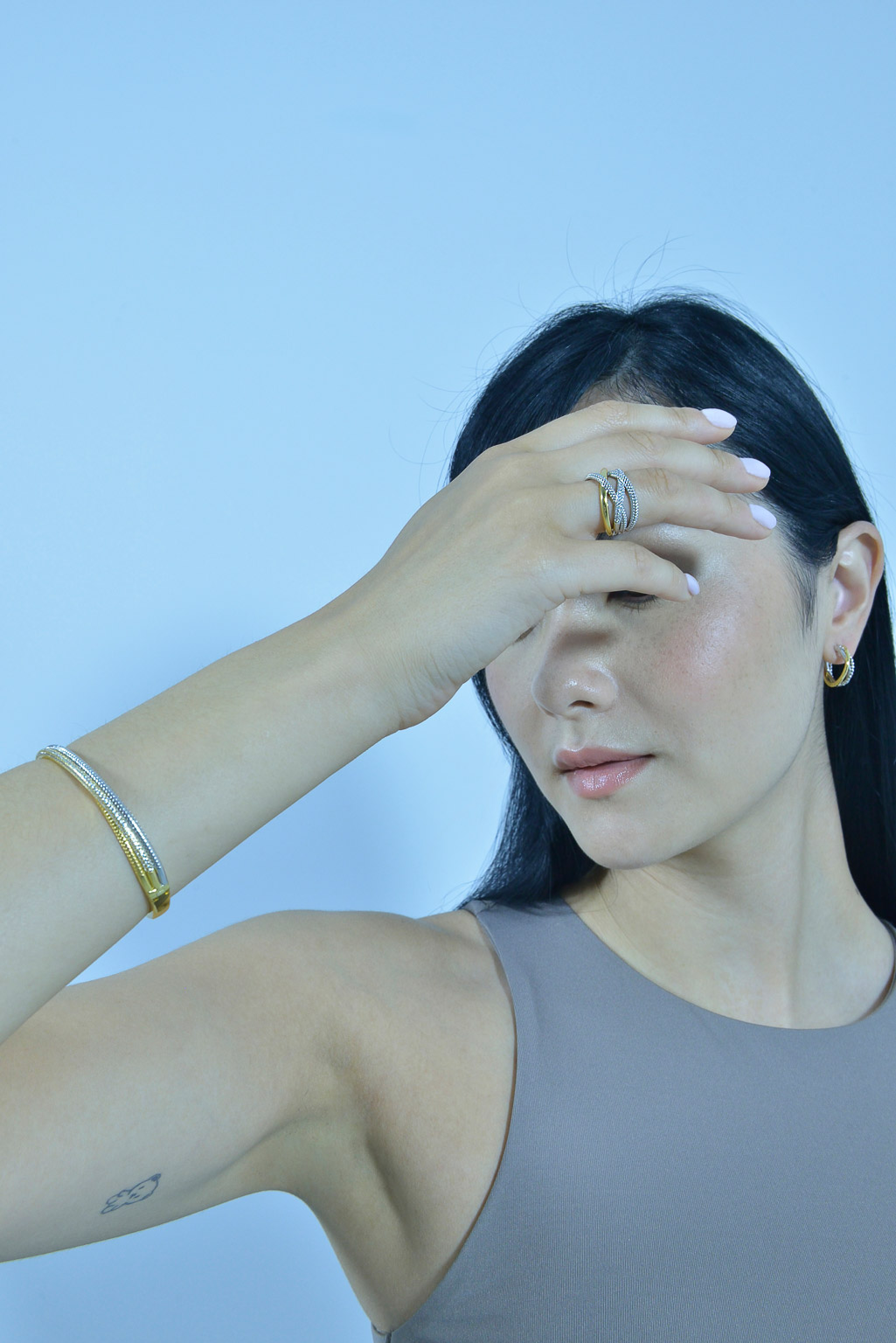 Pulsera Salvatore Plata Chapado dorado y rodio, linea gallonada y linea circonitas. Medida 6 x 5