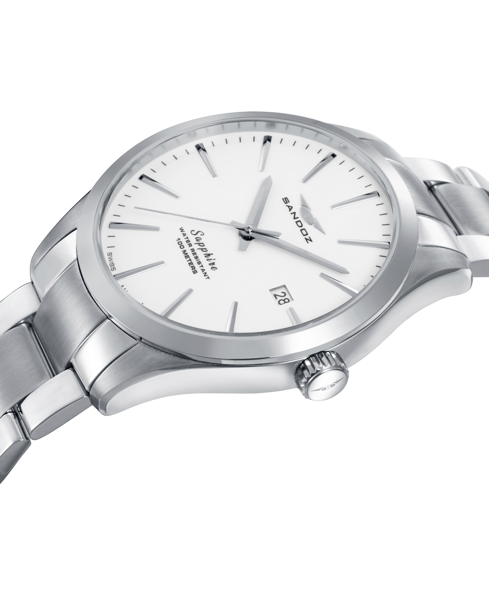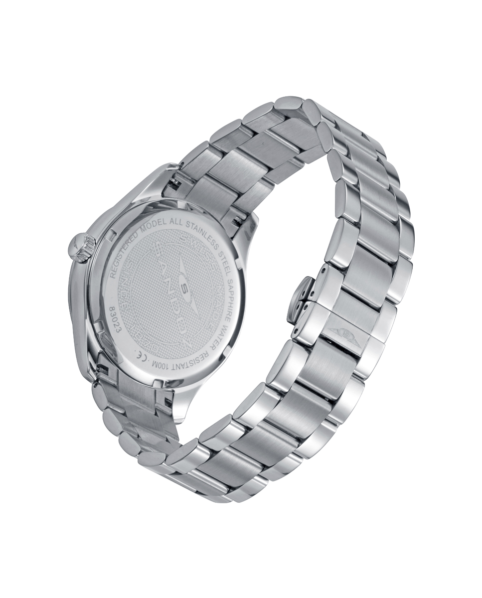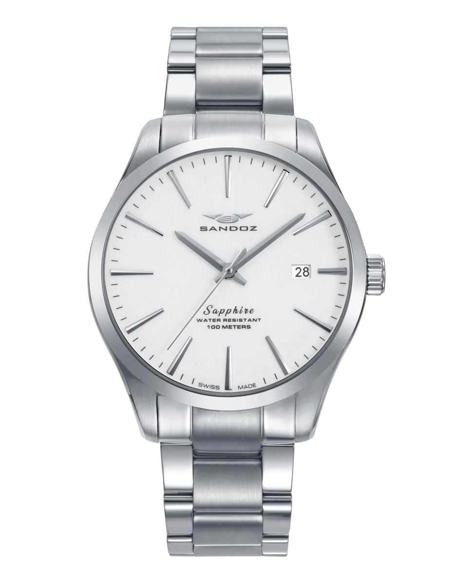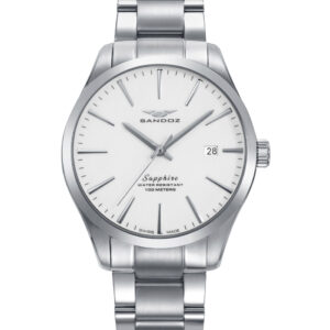 Reloj Hombre Sandoz 83023-87, tiene la caja de acero, la cadena es de acero sólido. El cristal es zafiro, el movimiento suizo cuarzo, y el display analógico.