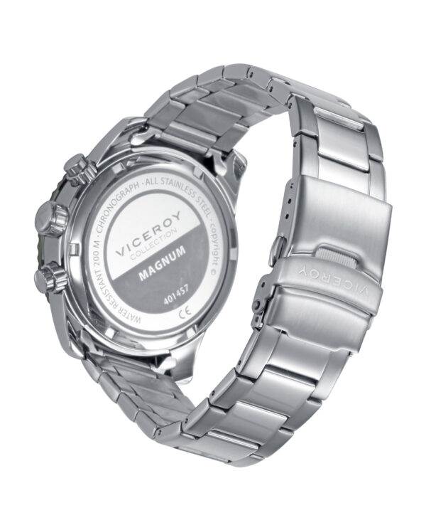El reloj Viceroy de la coleccion Magnum401457-67 se caracteriza por su Robustez y estilo que se combinan en este cronógrafo masculino con calendario, que luce una caja bitono de acero Ip azul con corona a rosca y resistencia de 20Atm. Su brazalete de acero aporta presencia, mientras la esfera azul con índices y las agujas en plata, junto a los contadores a las 3 y 9 y la aguja a las 6 con punta blanca, aseguran funcionalidad y precisión en todo momento.