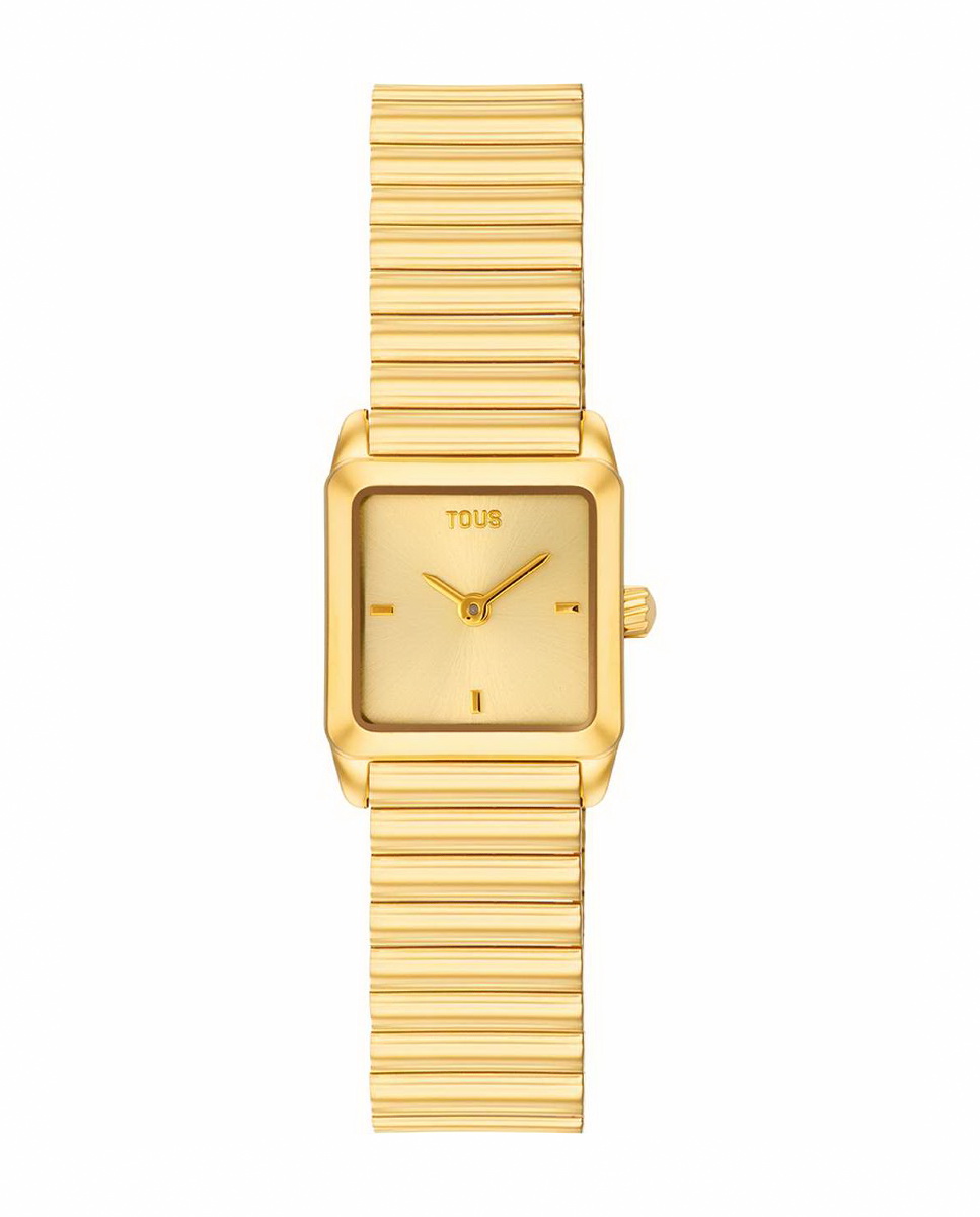 Reloj analógico TOUS 1954 con caja de acero inoxidable Ip Dorado y brazalete en acero inoxidable Ip Dorado. Cristal mineral plano redondo. Esfera blanca. Impermeable a 3 ATM. Movimiento analógico de cuarzo japonés.