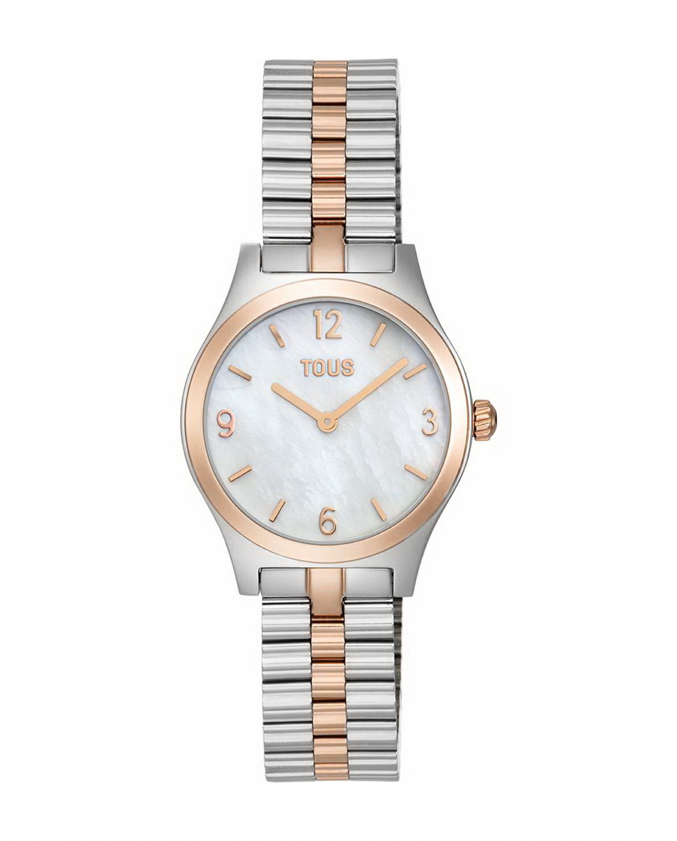 Reloj analógico TOUS Epic icon SS con caja de acero inoxidable con bisel Ip Rosa y brazalete en acero inoxidable bicolor Ip Rosa. Cristal mineral plano redondo. Esfera blanca. Impermeable a 5 ATM. Movimiento analógico de cuarzo japonés.