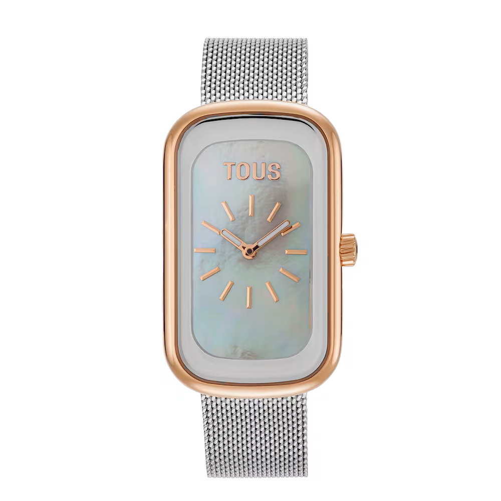 Presentamos la versión analógica del T-BAND. Reloj analógico TOUS T-Band Club con brazalete de acero inoxidable y caja de acero dorado con la silueta de un corazón en el interior.