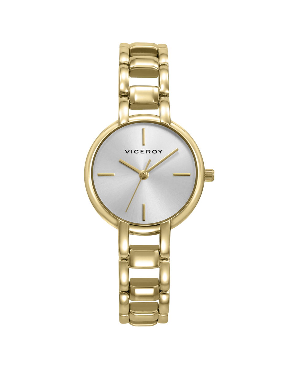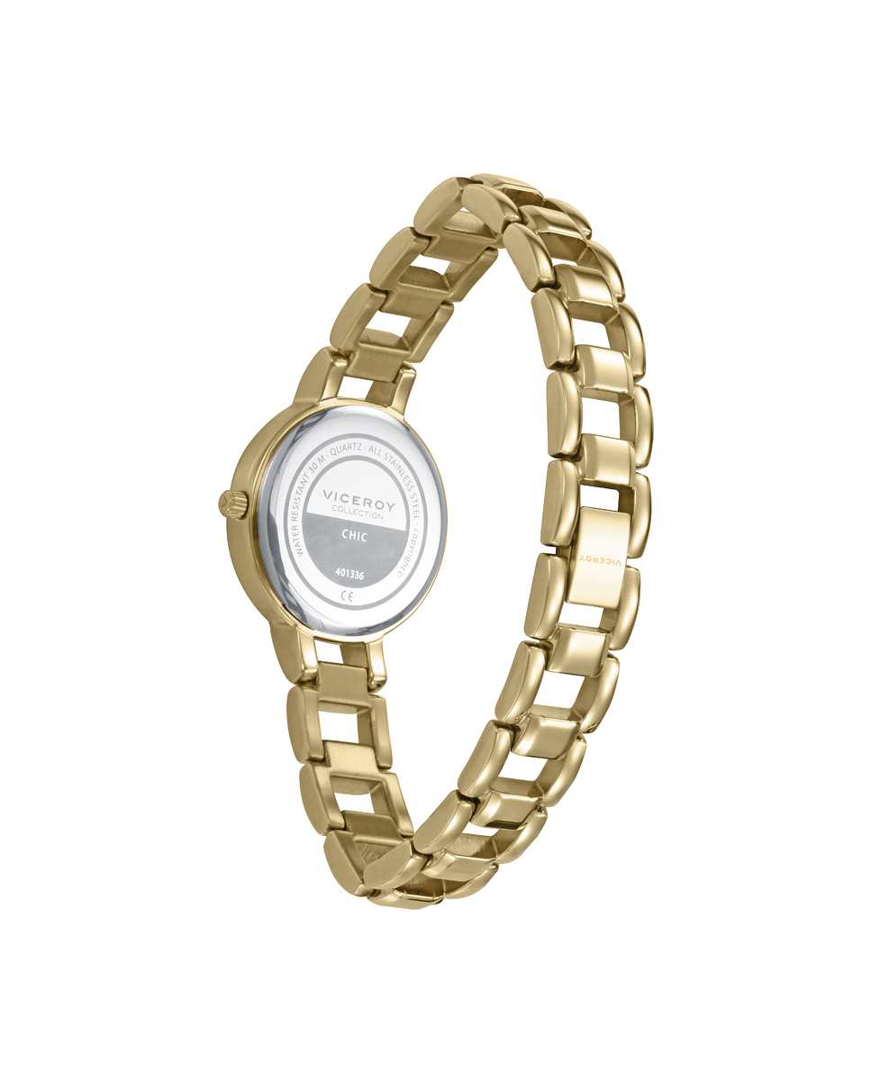 El reloj Viceroy de la colección Chic 401336-07 se caracteriza por su estilo que se combinan en este reloj femenino, que luce una caja de acero ip dorado, resistente de 3 Atm. Su brazalete de acero ip dorado aporta presencia, mientras la esfera verde con índices y las agujas en dorado, aseguran funcionalidad y precisión en todo momento.