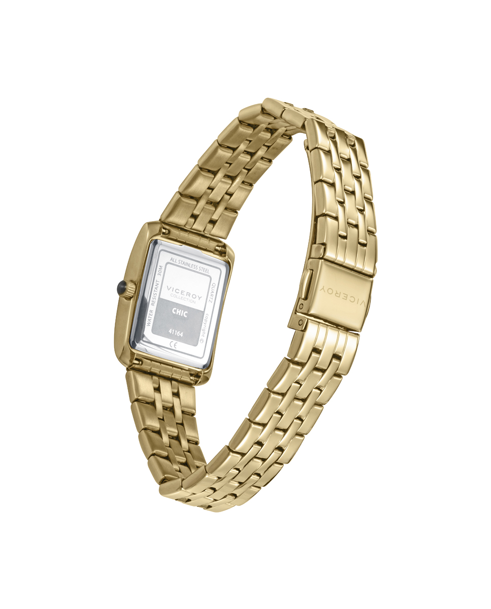 El reloj Viceroy de la colección Chic 41164-63 se caracteriza por su estilo que se combinan en este reloj femenino, que luce una caja de acero ip dorado, resistente de 3 Atm. Su brazalete de acero ip dorado aporta presencia, mientras la esfera verde con índices y las agujas en dorado, aseguran funcionalidad y precisión en todo momento.
