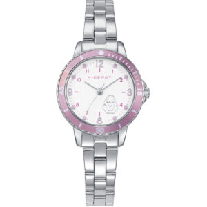 Niña Viceroy Sweet 401320-05, reloj tres agujas, caja y brazalete de acero esfera blanca y cierre con pulsadores que permite su ajuste a la muñeca.
