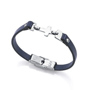 - Regalo: Pulsera de piel trenzada azul con placa de acero y detalles en esmalte de regalo.
