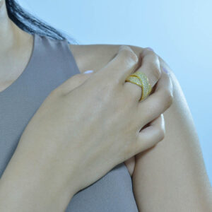 Sortija Salvatore Plata chapado dorado rodio tres linea gallonada dos líneas de circonitas.