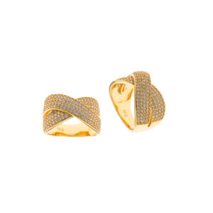 Sortija Salvatore Plata chapado dorado rodio tres linea gallonada dos líneas de circonitas.